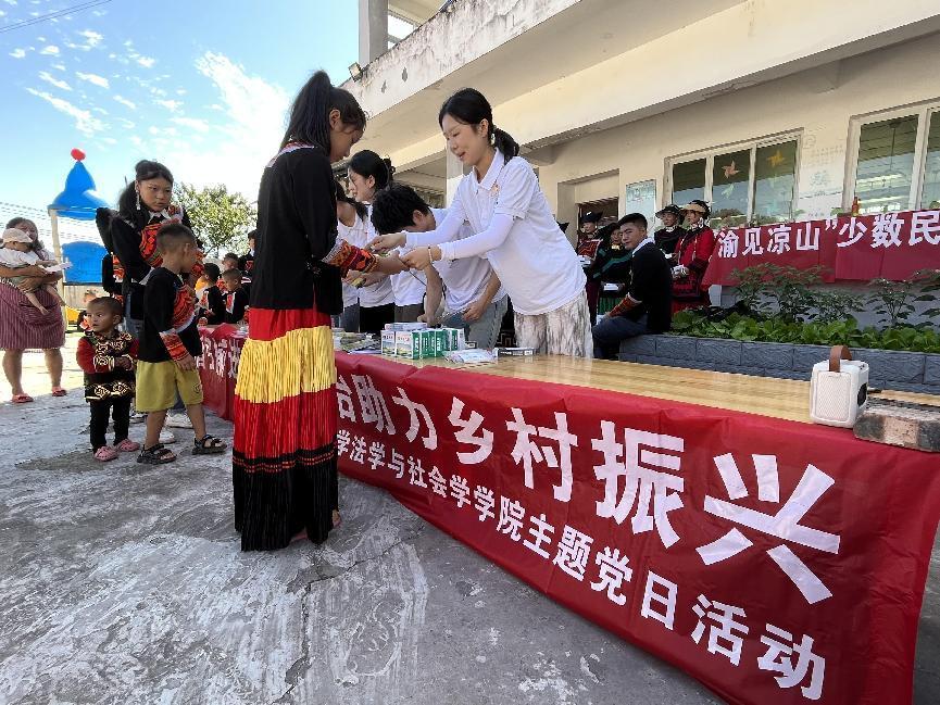 为深入学习贯彻党的二十大精神,以法治之力促进民族团结进步工作,全面推进主题教育不断取得新成效,太阳成集团tyc151cc公司党委组建“渝见凉山”少数民族地区普法宣传团,于7月22日深入四川省凉山彝族自治州雷波县西宁镇光辉村开展普法主题党日活动。宣传团由教工一支部党员白玉、向往,研究生一支部宣传委员何祖润指导,员工一支部7名法学专业本科生党员构成。