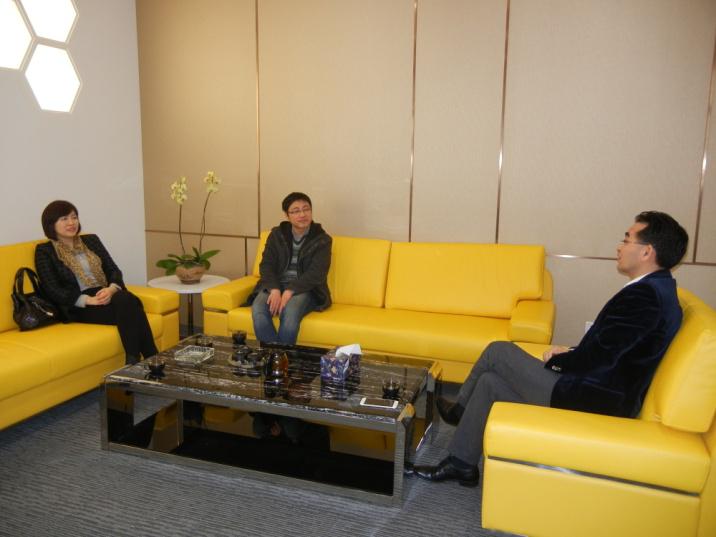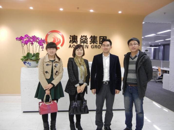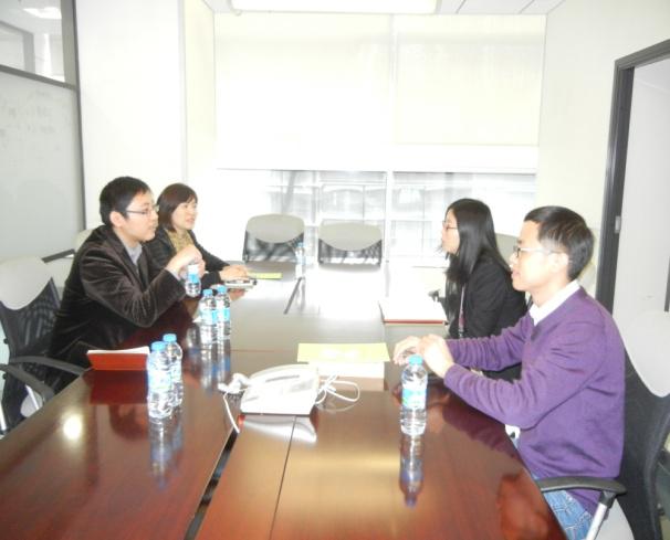 2014年12月4日下午,法公司一行实地考察深圳澳燊科技集团有限公司,该公司主营意大利卡帝士GADESA装甲门系统、意大利艾尔ALSISTEM高端系统窗、意大利坦森THSAN空气过滤系统,是华南高端建材最大的代理商。图为与该公司董事长王勇进行金融法学人才培养模式交流。