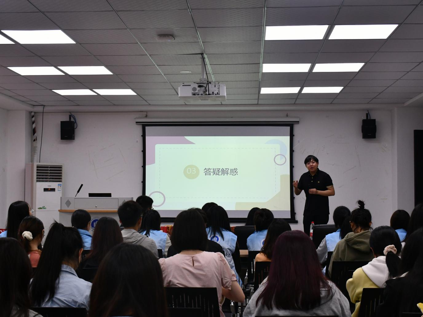 太阳成集团tyc151cc“益起爱”青年志愿者服务队2024年4月20日在员工发展中心02会议室开展了“青春献礼二十大,构筑人生新规划”考研考公交流分享会。本次活动作为公司“学长就业讲堂”系列活动之一,邀请到专任教师卢博参会指导,2020级苏小松、张鑫、孟杰、袁双怡四名毕业生担任主讲人。